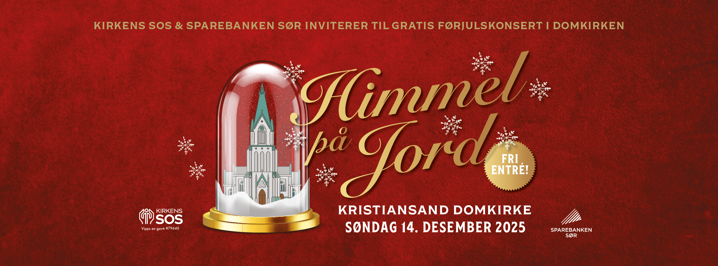 Kirkens SOS og Sparebanken Sør gleden av å invitere til gratis julekonsert i Kristiansand domkirke. På scenen står storband, barnekor og en rekke gjesteartister.